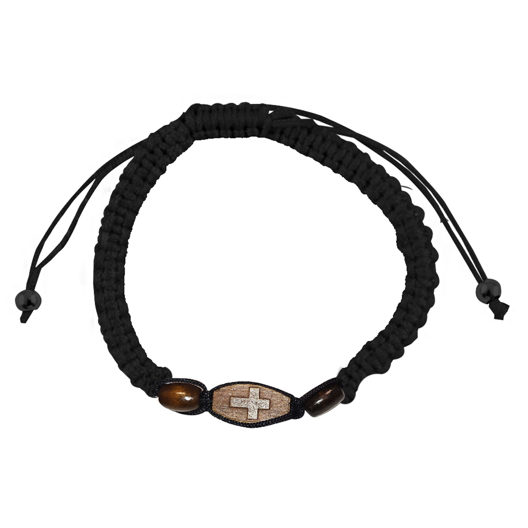 Браслет с молитвой "Псалом 90", ручное плетение, овал крест дерево, чёрный